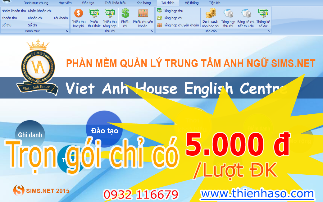Nếu các bạn cần tư vấn về phần mềm quản lý trung tâm Anh Ngữ SIMS.NET, hãy liên hệ cho chúng tôi theo số 0932 11 66 79 (gặp Mr Việt) hoặc email: thienhaso@gmail.com